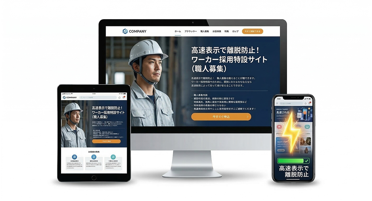 ワーカー採用では、本気度の高い求職者がダイレクトに集まる「採用サイト(ホームページ)」を作り、求人応募を獲得します。